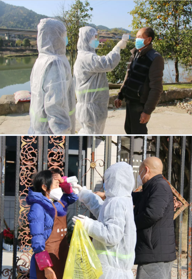 医疗小分队队员手持额温枪,每到一处,边测体温进行排查,边一对一的进行防疫知识宣讲,秉承不漏一户、不漏一人的原则,一步一步行走在乡间小路上。最多时,一天共为4600 人进行了排查。