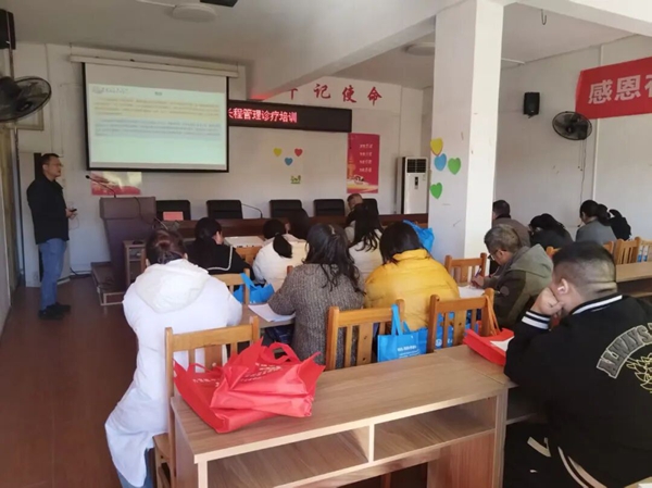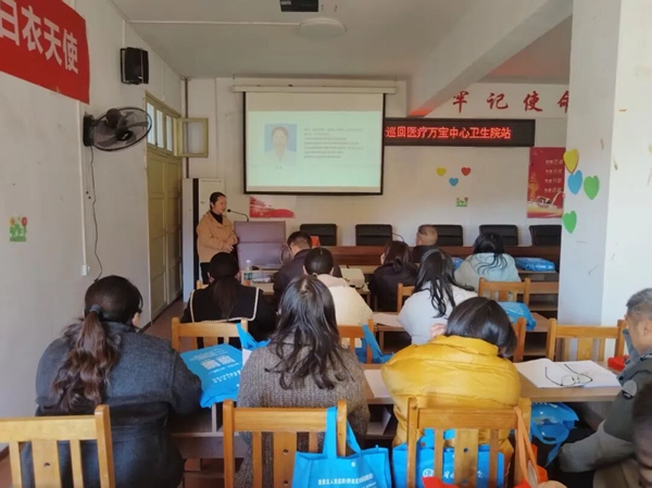 14时,万宝中心卫生院三楼会议室里,周琼讲《糖尿病患者的长程管理》时,村医们时不时低头记着笔记;李智讲《基层医院高血压病的规范化防治》,有人举着手机拍 PPT;邓辉讲《肠常清,常年轻》,后排的大叔忍不住插问 “有肛肠问题吃辣到底行不行?”,引得满场笑。“这些知识听得懂、用得上!” 村民周先生翻着记满字的本子,连说 “没白来”。