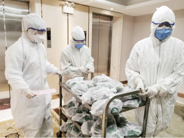 上午11点15分,最后一批隔离人员从酒店安全通道撤出,与朝夕相处了14天的医护人员挥手告别,互道珍重。隔离人员谢某流下了感动的泪水,她说:“从刚刚入住酒店时的惶恐、孤独、不适应,再到慢慢接受,与医护人员成为好朋友,最后再到安全解除隔离,这中间经历了太多的心路历程,这里的医护人员尽管不能一一道出姓名,甚至都没能真正清楚地看到他们每个人的脸,但是隔离人不隔离爱,我能真诚的感受到他们每一个人的辛勤付出以及对我们的关爱,我想对他们表示最诚挚的感谢!”