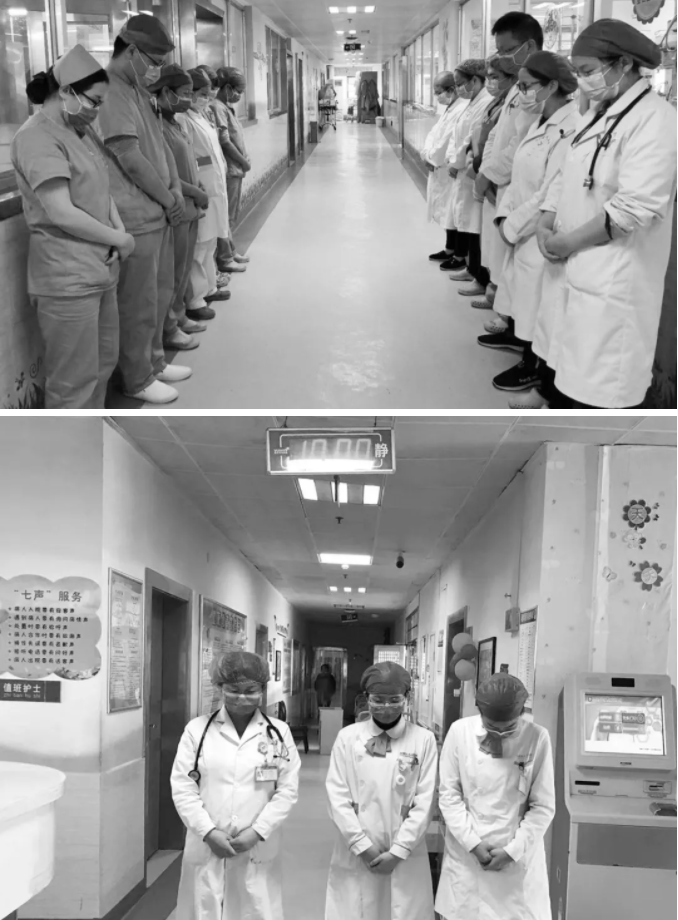上午10:00,在岗工作人员默哀,向抗击新冠肺炎疫情斗争牺牲的烈士和逝世同胞表达深切哀悼!