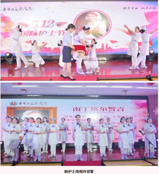 座谈会上,与会人员集中观看了娄星区人民医院(娄星区妇幼保健院)“5•12”国际护士节献礼片《奋进担当,护理无限》微视频,视频充分展现了新时代白衣天使的面貌与风采,淋漓尽致地演绎了她们爱岗敬业、无私奉献的高尚情怀与职业道德;随后,护理团队表演的诗朗诵《致敬医者仁心,感恩大爱无疆》、抗“疫”歌舞剧《奉献》、护士礼仪及双人团队基础生命支持急救演示四部作品,用语言艺术和体态艺术,展示了医务人员在工作中的坚定信仰和责任担当,引起现场与会人员的共鸣。期间,医院为19名新入职护士举行授帽仪式和重温南丁格尔誓言,以此纪念南丁格尔诞辰200周年和即将到来的“国际护士节”。