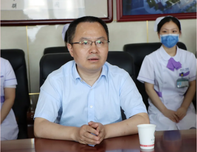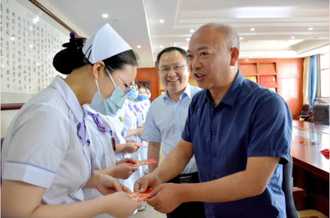 娄星区卫生健康局党组书记李建宏给护理工作者送上慰问金