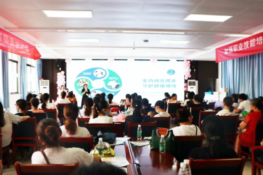 2020年8月1-7日是第29个世界母乳喂养周。8月8日,我院孕妇学校举办“母乳喂养健康知识讲座”暨“优秀月嫂风采展示会”活动,活动主题为“支持母乳喂养,守护健康地球”。医院副院长兼妇科主任曾华、副院长刘碧微出席,活动由产科助产长张梅花主持。活动吸引了百余名准爸、准妈、产后妈妈及通过了娄星区育婴师培训结业证书及人社局组织的职业技能鉴定考核的优秀月嫂们前来参加活动。