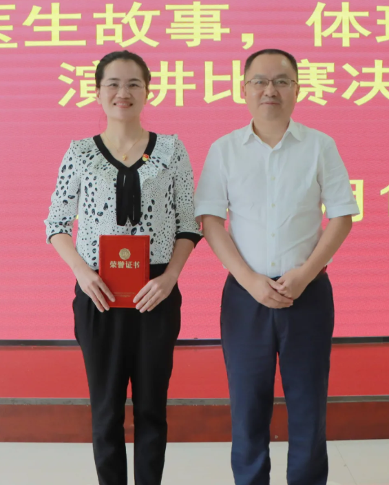 娄星区卫健局党组成员、医院院长贺军民为一等奖获得者颁奖并合影