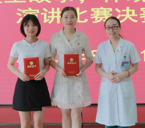 护理部副主任曾冬红为优胜奖获得者颁奖并合影