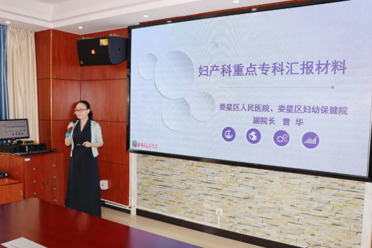 我院副院长兼妇科主任曾华从专科建设与管理、专科基本规模、专科医疗服务能力与水平、临床医疗质量控制与评价、亚专科建设、辐射能力、重点专科建设规划七个方面汇报了项目建设情况。