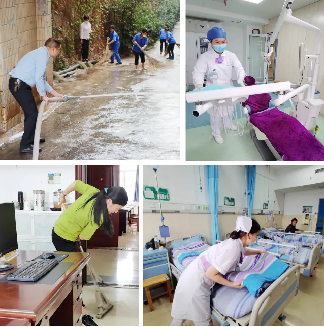 9月18日,按照区委、政府的统一部署,全院干部职工心往一处想、劲往一处使,在全院范围内开展大扫除,进一步净化环境卫生,对医院地面、窗户、楼道、病房、值班室、卫生间等卫生区域对照6s标准,进行全面清理。