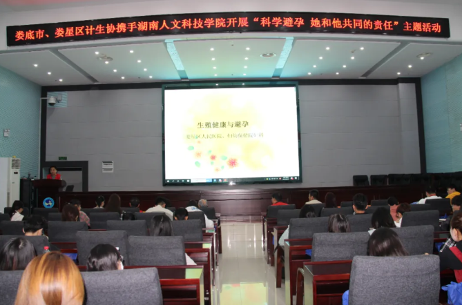 9月26日是世界避孕日,为广泛宣传国家免费提供避孕药具基本公共卫生服务政策和科学避孕知识,增强女性的自我保护意识,减少流产的发生,提高年轻人的避孕意识,娄底市计生协、娄星区计生协联合我院在湖南人文科技学院开展的以“科学避孕 她和他共同的责任”为主题的世界避孕日宣传活动,娄底市计生协党组书记、常务副会长张旺夫出席。我院妇科副主任李芳良应邀授课。
