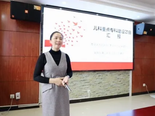 医院副院长兼大儿科主任易赛君从专科建设与管理、专科基本规模、专科医疗服务能力水平、临床医疗质量控制与评价、亚专科建设、辐射能力、科研与教学七个方面汇报了项目建设情况。