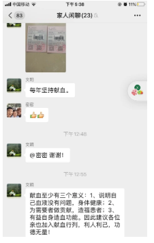医院急诊科易琴将献血的消息告诉家人后,公公婆婆主动提出也要一同去献血。当天一家三口来到献血处填表、体检筛查,但易琴的婆婆由于身体原因不适合献血。献完血后,易琴的公公还在家庭群里宣传献血的好处和意义。