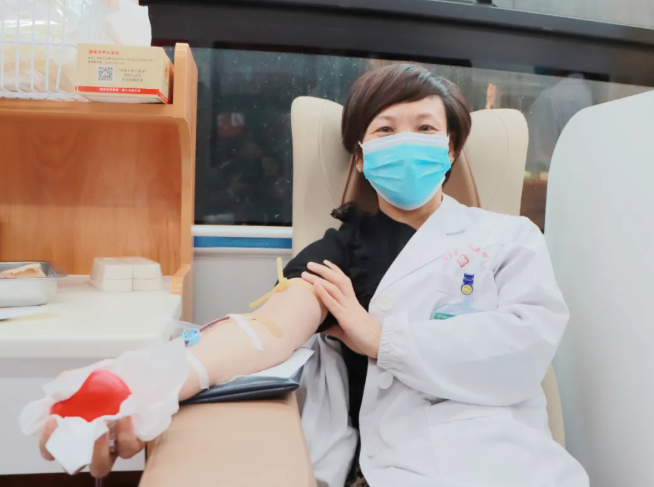 驰援湖北罗田县的抗疫英雄邱春也来到献血车上,据了解,这是她第10次献血。她说:“作为医务工作者,与病人朝夕相处,我们更加深知被喻为‘生命之河’的血液对于生命抢救的重要性,因此我愿意献出自己的一份热血,为生命接力!”