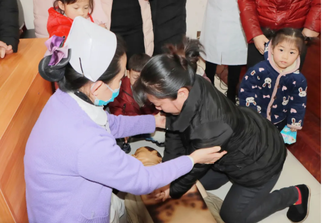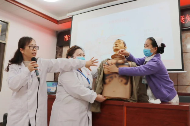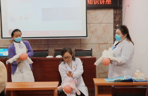 曾华用通俗易懂的语言从烧烫伤、外伤、流血和其他常见意外事故的急救入手,为大家提供相关的急救知识,以及急救过程中需要注意的细节,如何在紧急情况下对患者进行心肺复苏和怎样正确使用“海姆立克”急救法。曾华和同行的护理人员配合,利用模型进行现场教学,对急救姿势、手法及相关要求进行了现场指导。全体家长和保教老师在曾华等人的指导下一一进行了操作体验,并在大家操作过程中对出现的错误给予及时纠正和指导。