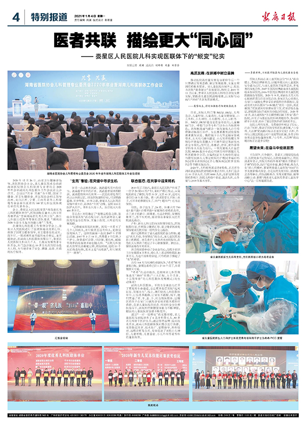 在湖南儿科医联工作案例分享会上,娄星区人民医院进行了医联体建设成果汇报,得到了国家卫健委领导,省卫健委党组成员、副主任、一级巡视员龙开超的充分肯定。龙开超指出,在湖南儿科医联体的帮助下,娄星区人民医院儿科从几个人、几张床发展到亚专科齐全,年门急诊量达10多万人次的综合性大儿科,为当地带来了安全、便捷、高效、优质的医疗服务。