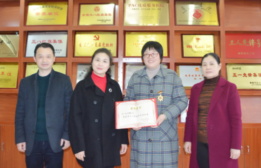 2016年被评为优秀党务工作者与全区优秀妇女工作者。