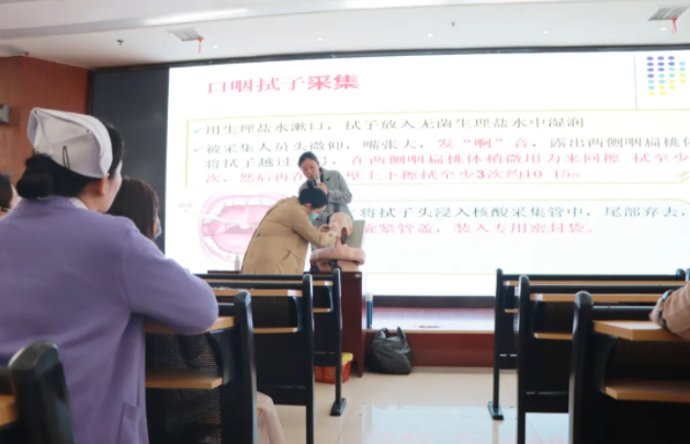 培训由护理部、科教科、示教室牵头,采取集中培训与分散培训相结合的方式进行,对全院近300名核酸采样人员进行了强化培训。