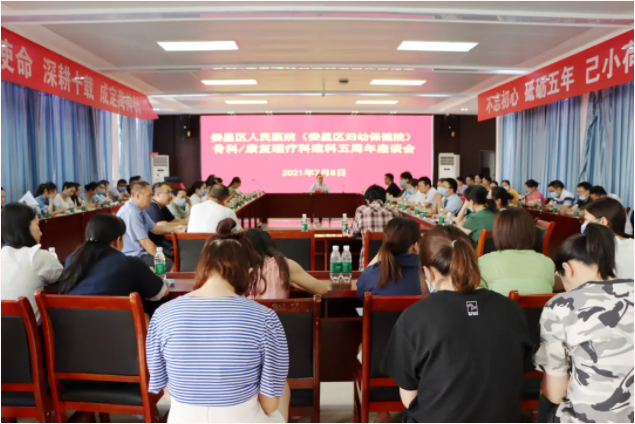 7月8日,娄星区人民医院(娄星区妇幼保健院)在4楼会议室召开骨科/康复理疗科建科五周年座谈会。娄星区卫健局党组成员、医院党委书记贺军民出席会议并做总结讲话,医院副院长曾华主持,部分院领导、各科室主任、护士长及骨科/康复理疗科全体职工参加。大家欢聚一堂,重温骨科/康复理疗科成长历程,共商发展大计,围绕如何将专科做精、做强、做大进言献策。