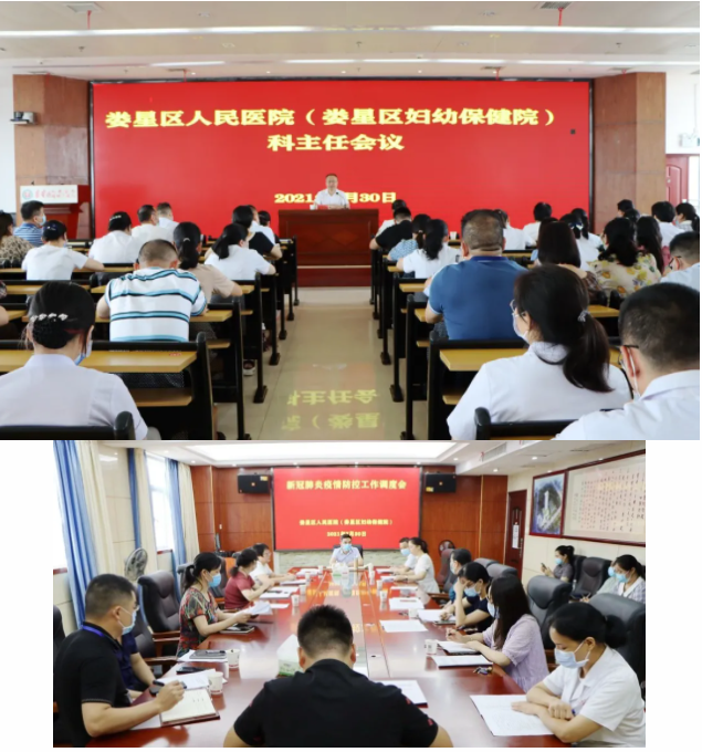 针对近期多地相继出现新冠疫情,娄星区人民医院(娄星区妇幼保健院)贯彻落实市、区两级党委政府指示要求,进一步落实落细防控举措,构筑常态化新冠疫情防控防线,7月30日,医院连续紧急召开两场会议,一场是科主任会议,娄星区卫健局党组成员、医院党委书记贺军民主持并讲话;另一场是“新冠肺炎疫情防控调度会”,党委副书记、院长邱进军主持第二场会议,院班子成员、院务会成员、各科室负责人参加会议。