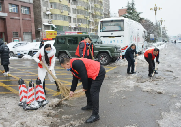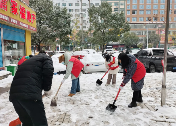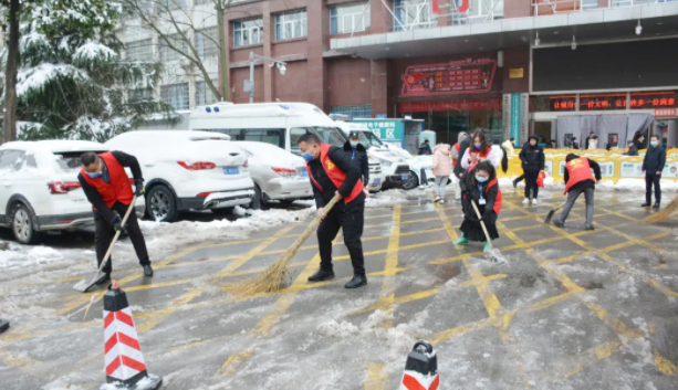 12月26日,娄底市下起了2021年第一场雪,皑皑的白雪很快将整个城市妆成了银装素裹的世界,一夜过后道路明显积雪冰冻,给出行带来很大不便,为保障人民群众就医方便,通行顺畅与安全,我院党员、志愿服务队积极响应,在医院、帮扶社区、石井镇朝阳村等主干道路积雪路段进行铲雪清扫。