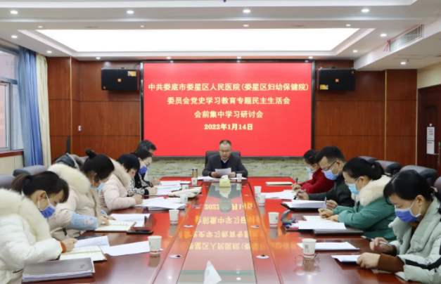 1月14日,我院党委理论学习中心组召开党史学习教育专题民主生活会会前集中学习研讨会,娄星区卫健局党组成员、医院党委书记贺军民主持会议,党委副书记、院长邱进军,院班子成员、院务会成员参加会议并作交流研讨。