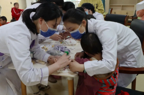 义诊现场,易赛君为老师、护工及孩子们进行《儿童春季常见疾病的识别与防治》专题讲座,通过讲解使老师和孩子们进一步了解春季常见疾病如何识别、预防及诊治,并提醒大家要注意个人卫生和防护、养成良好的卫生习惯等方面有效地预防疾病。