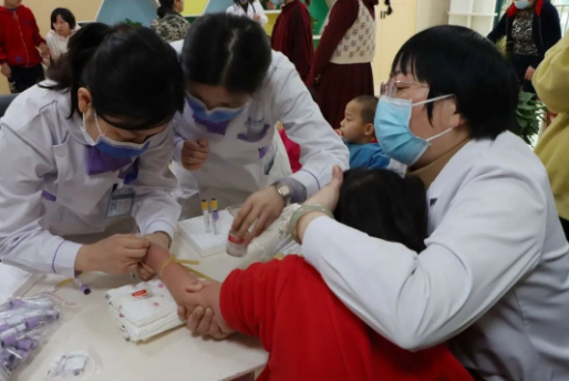随后,孩子们在老师的带领和组织下,有序地接受了有针对性的健康查体和采血化验,因为孩子的特殊原因,每轮到一个孩子,医护人员都细心、耐心地与他们沟通,消除畏惧心理,对患疾病的孩子与校医及时沟通提出诊疗方案,对不方便的孩子,医务人员还细心到床旁为他们采血及诊查。