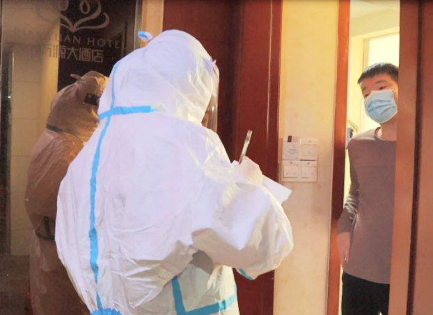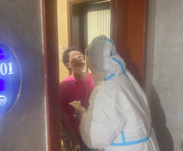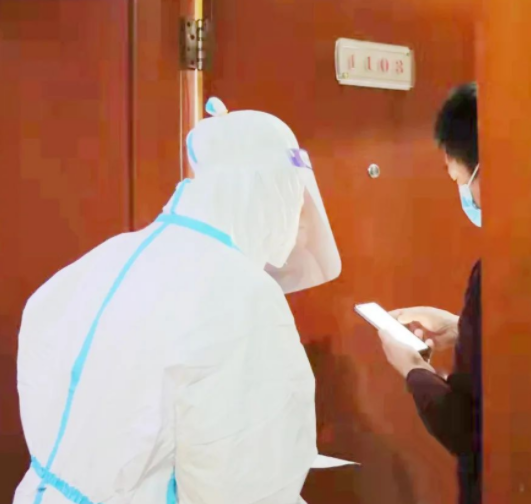 清晨6点,逐一敲开酒店客人的门采核酸,是一天工作的开端。