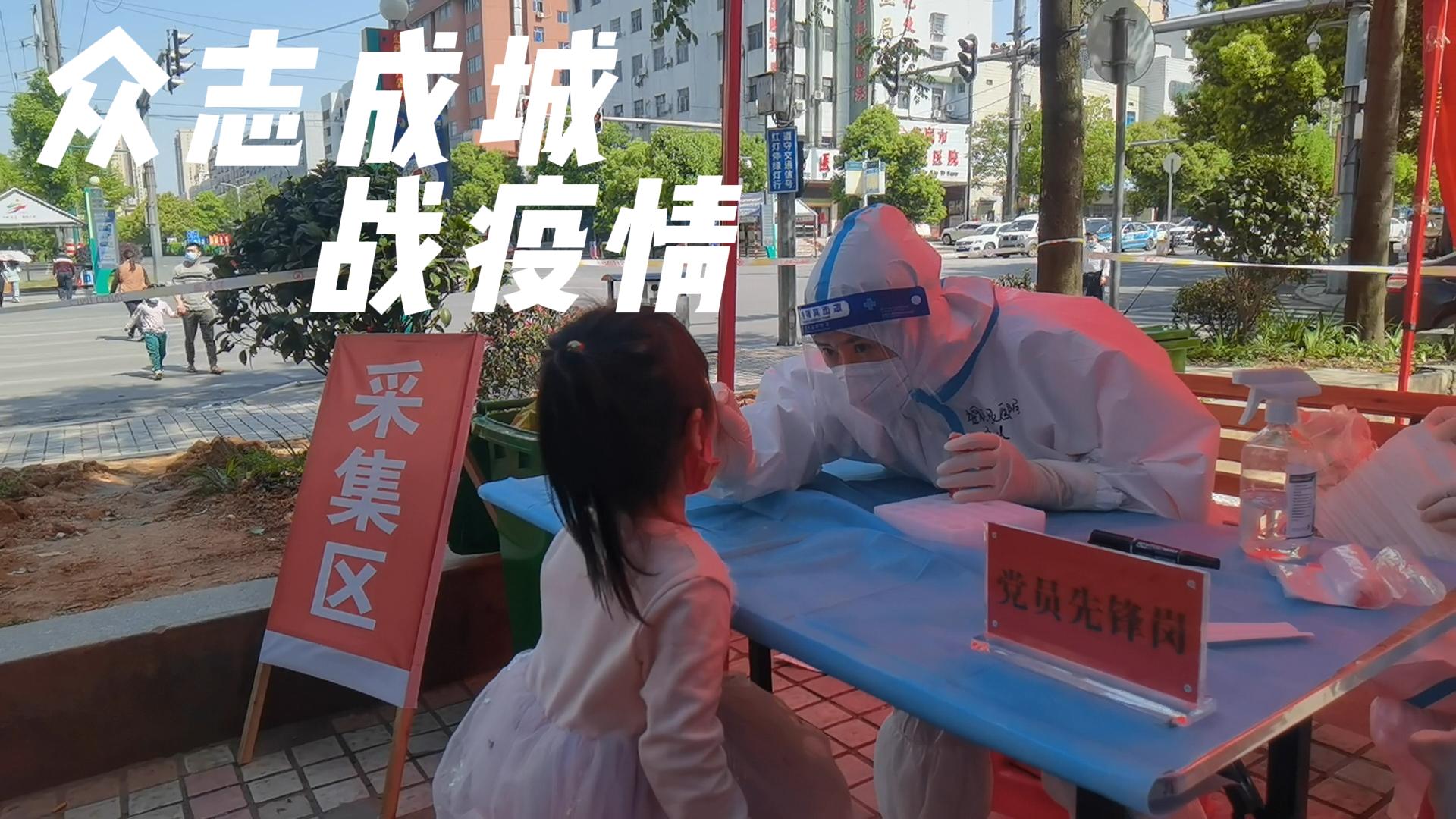 中午一点,顶着三十度的高温,“核酸采样队员”耐心对每个受采者讲解核酸采集的流程,指导他们正确张口。一个采集动作被重复无数次,防护面罩后,一双双坚定的眼睛透着疲倦,此时汗水在他们身上、脸上流淌,面对着排起长龙等候检测的队伍,他们不敢喝水,不敢上厕所,不敢耽搁一刻,要问是什么在支撑着他们,除了医务人员的责任和担当,更多的是战胜疫情的信心与决心。