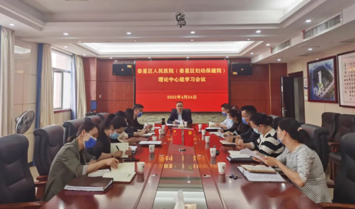4月24日,娄星区人民医院(娄星区妇幼保健院)召开党委理论学习中心组学习(扩大)会议,娄星区卫健局党组成员、医院党委书记贺军民主持会议,医院党委副书记、院长邱进军出席,院班子成员、院务会成员参加会议。