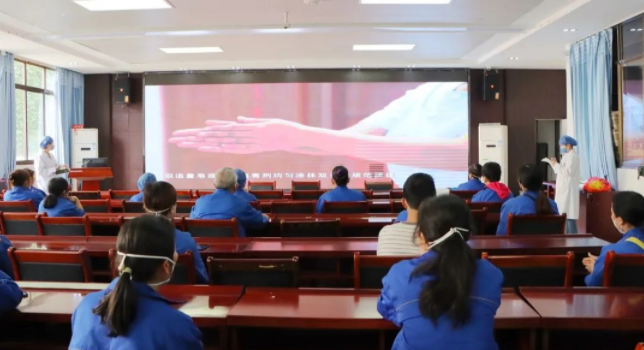 培训由院感科负责教学,采用播放视频和现场演练的形式,教授大家防护用品的使用方法。并结合工作实际,对保洁人员工作职责、物表清洁消毒方法、医疗废物处置流程、个人防护方法及职业暴露紧急处置等院感防控工作的基本知识进行培训;对保洁、保安人员从防护用品使用原则、物品准备、手卫生正确方法、防护服穿脱流程等方面进行细致的讲解,并针对穿脱过程中每个步骤的注意事项,进行现场演示。