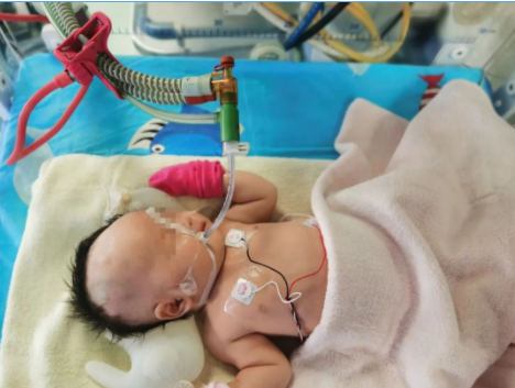 4月6日,卉卉反复高热,二氧化碳潴留,痰多,有微弱的咳嗽样动作,氧浓度要求高,呼吸急促,三凹征明显,并发新生儿败血症。