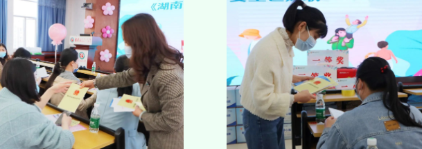 杨建奇为二等奖颁奖、朱燕群为三等奖颁奖,并合影