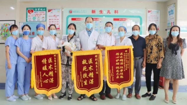 9月7日,历时19天惊心动魄的生死一线,新生儿科团队用精湛的技术和精心的护理,和死神争分夺秒,终于使毛毛回到了妈妈的怀中,家人的日夜思念在抱起他的那一刻得到了慰藉。同时,妈妈郑重地把三面锦旗送到医护人员手中:“谢谢你们,是你们给了他第二次生命,我们全家都会牢记这份恩情!”