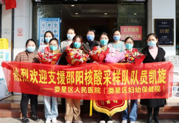 一方有难,八方支援。邵阳市疫情来袭后,按照省委省政府、市委市政府统一安排部署,市卫健委迅速调度,娄星区人民医院(娄星区妇幼保健院)积极响应支援,于10月17日起,分批次派出20名医护人员同全市其他医疗机构组成援邵医疗队,奔赴邵阳,迅速投入到当地疫情防控工作中去。在这34个日日夜夜里,援邵的勇士们带着责任和使命,带着初心和热情,不分昼夜、争分夺秒,持续奋战在方舱医院、核酸实验室、居民小区、社区街道、学校、乡村小镇等疫情防控最前沿,圆满完成了当地政府安排的各项任务,以实际行动守护了群众的生命安全,传递了守望相助、共克时艰的手足深情。