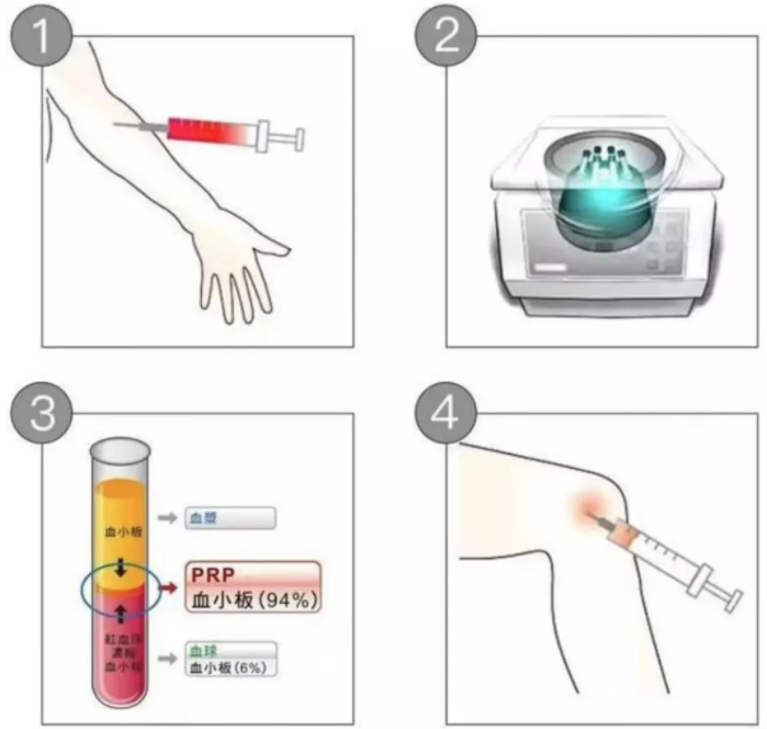 说到PRP大家可能还有点陌生,PRP中文名称富血小板血浆,PRP技术就是通过离心技术把血液中的高浓度的血小板收集起来,然后把富含大量生长因子的血小板注射回患者损伤的部位,这样对患处组织细胞和基质的再生起到促进作用,从而加速组织的修复,以此来达到抗炎止痛、延长关节使用周期的治疗目的。